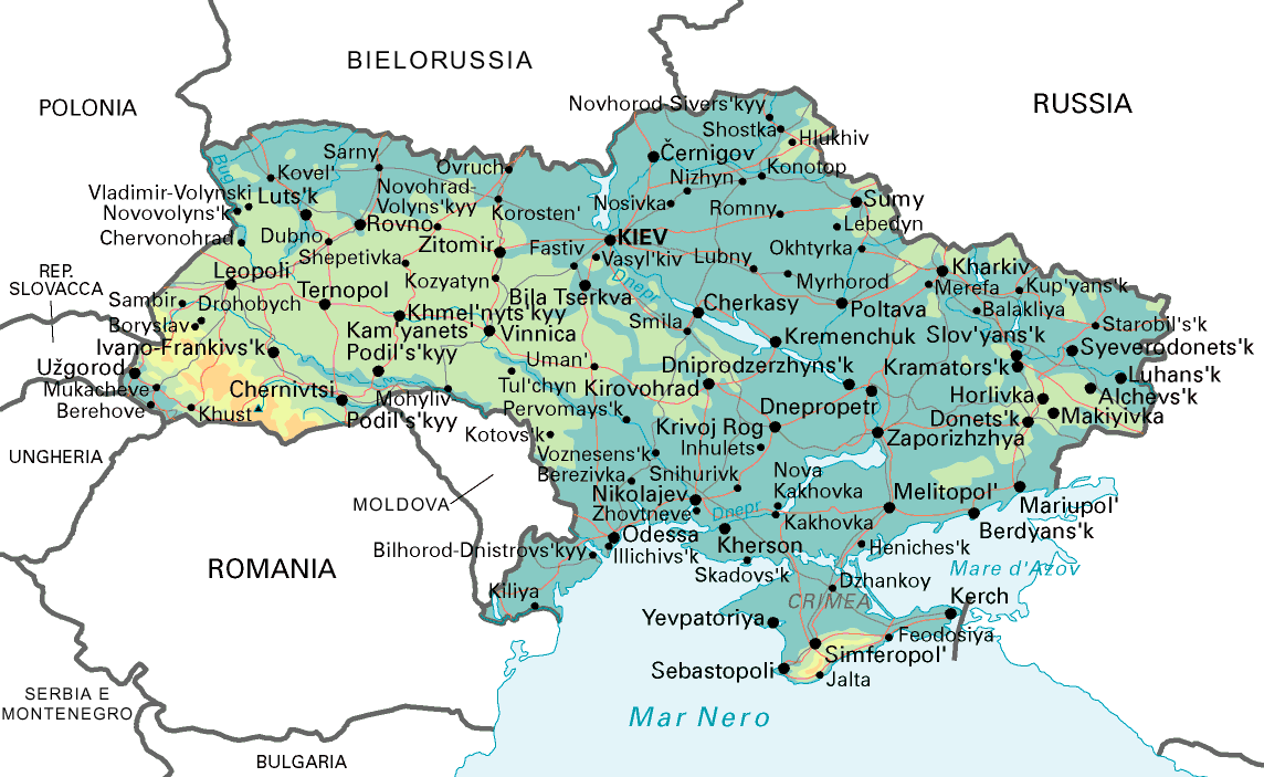 L’Ucraina geograficamente parlando è uno Stato situato nell’Europa Orientale, confina con la Bielorussia a nord, con Slovacchia, Polonia, Romania e Ungheria a ovest, a est con la Russia (dalla quale è indipendente dal 1° dicembre del 1991), ed è affacciato sul Mar Nero.